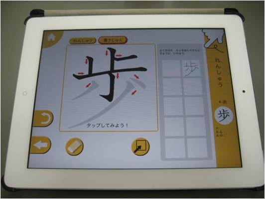・「練習」では、漢字の筆順を見て覚え、なぞって練習することができます。うまくなぞれた字は、保存しておくことができます。・「書き取り」や「読みがな」のドリルがあります。