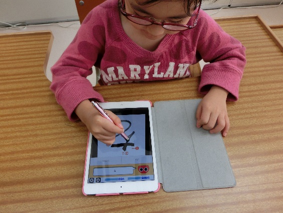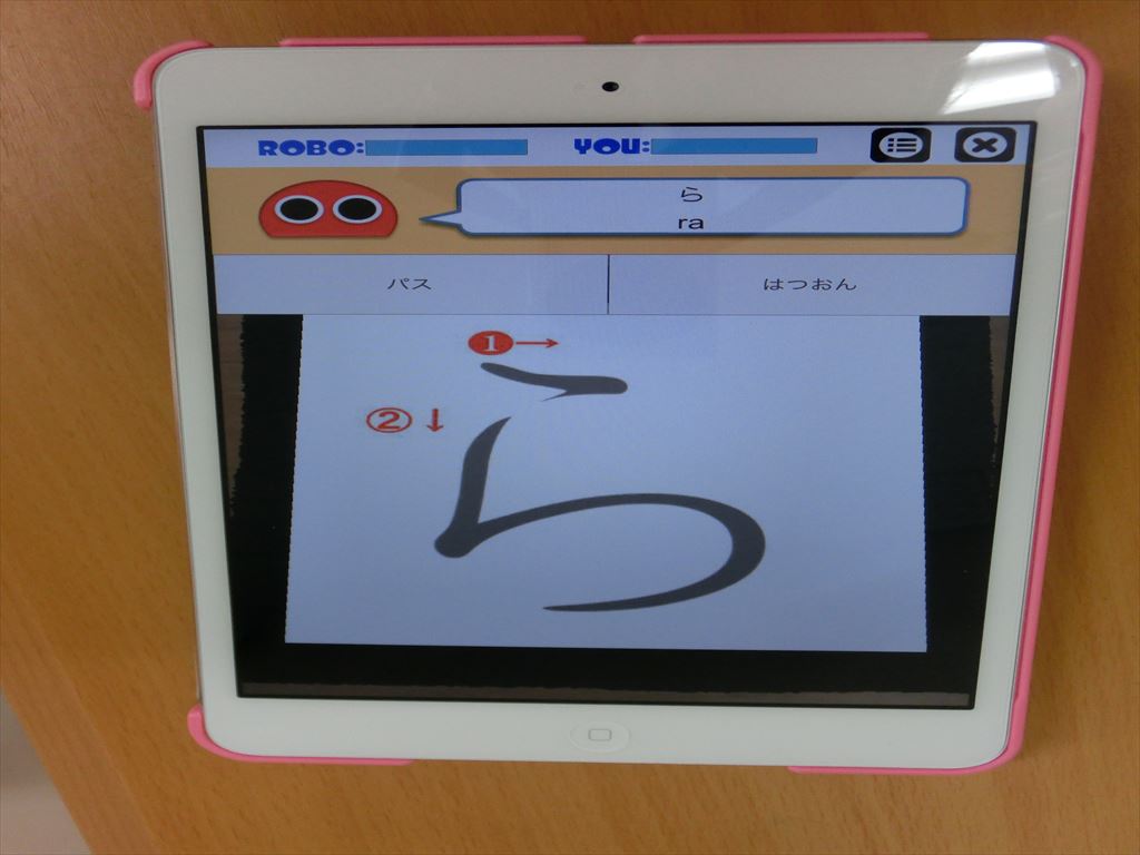 ・ひらがなやカタカナの書字練習で活用しています。・文字の書き順が数字で表されています。表示された文字を書き順のとおりに、指やタッチペンでなぞります。書き順認識機能があり、正しい書き順かどうかを判定し、間違っている場合は再び同じ文字が表示されます。正しくなぞることができたときには、‟大変よくできました”の判子が押され、次の文字が表示されます。<br />・50音順に文字を表示していったり、ランダムに文字を表示したりと、学習の順番を選ぶことができます。<br />・「れんしゅう」モードとゲーム感覚で学習できる「バトルモード」があります。