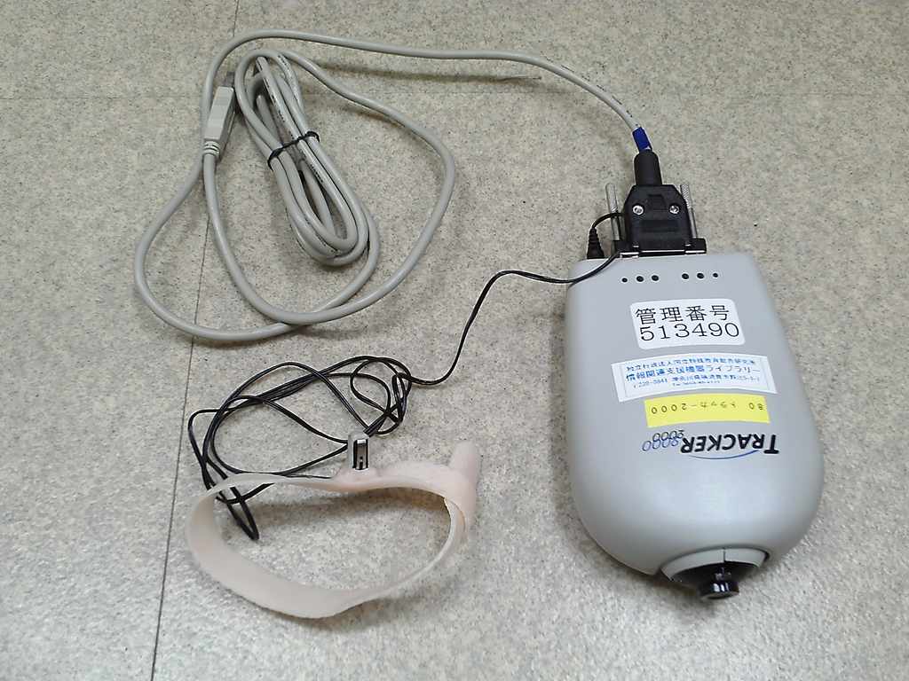 反射シールを額などに貼ることによって首の動きにより操作できるマウス。