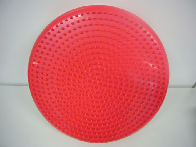 空気の入った円形マットです。上に座ったり,足で乗ったりすると空気の偏りでぐらつくため,きちんと座ったり立ったりするためにはバランスを取らなければなりません。ぐらぐらする感覚を楽しみながらバランス感覚を養うことができます。