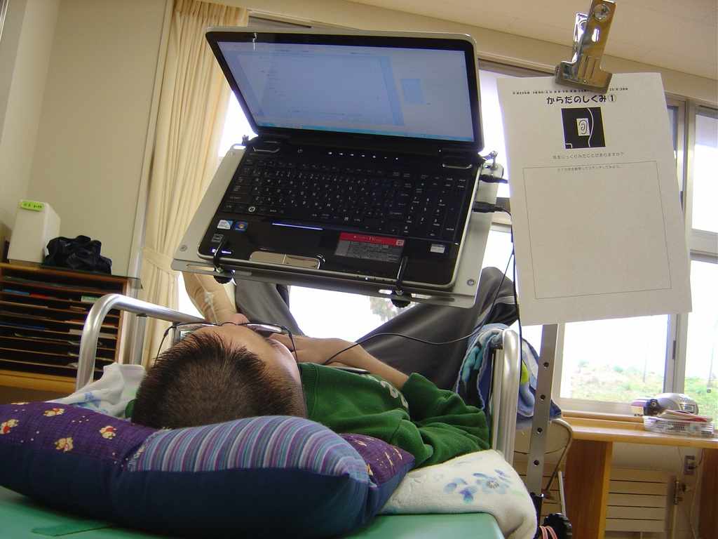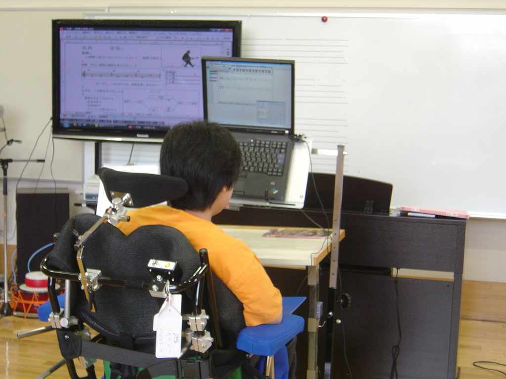 文章のデジタル化を図り、プレゼンテーションソフトの進行を簡単に確実に行うために外部スイッチを活用した