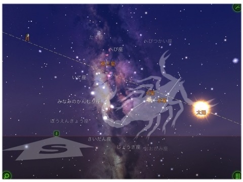 自分の動きに併せて画面が変化するので感覚的に方位と天球のイメージが捉えられる
