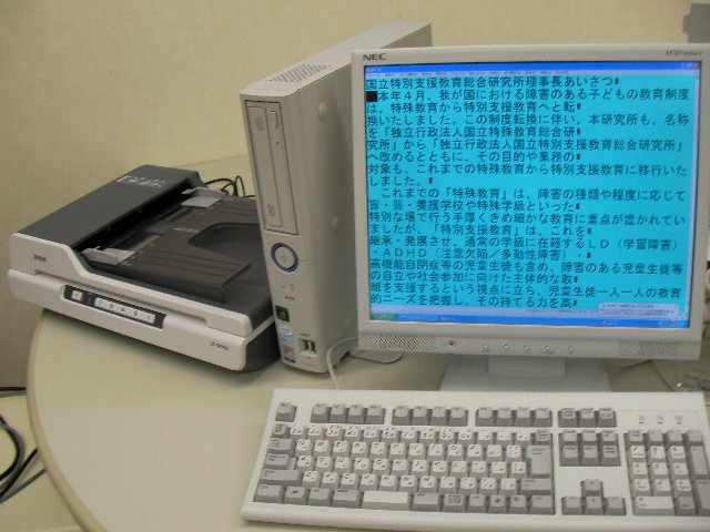印刷物をスキャナにセットして、キーボード操作を行うだけで、本を読むことができる。